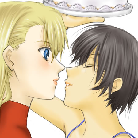 霧香の顔。そっと重なるくちびる。驚くミレイユ・満足げな霧香」